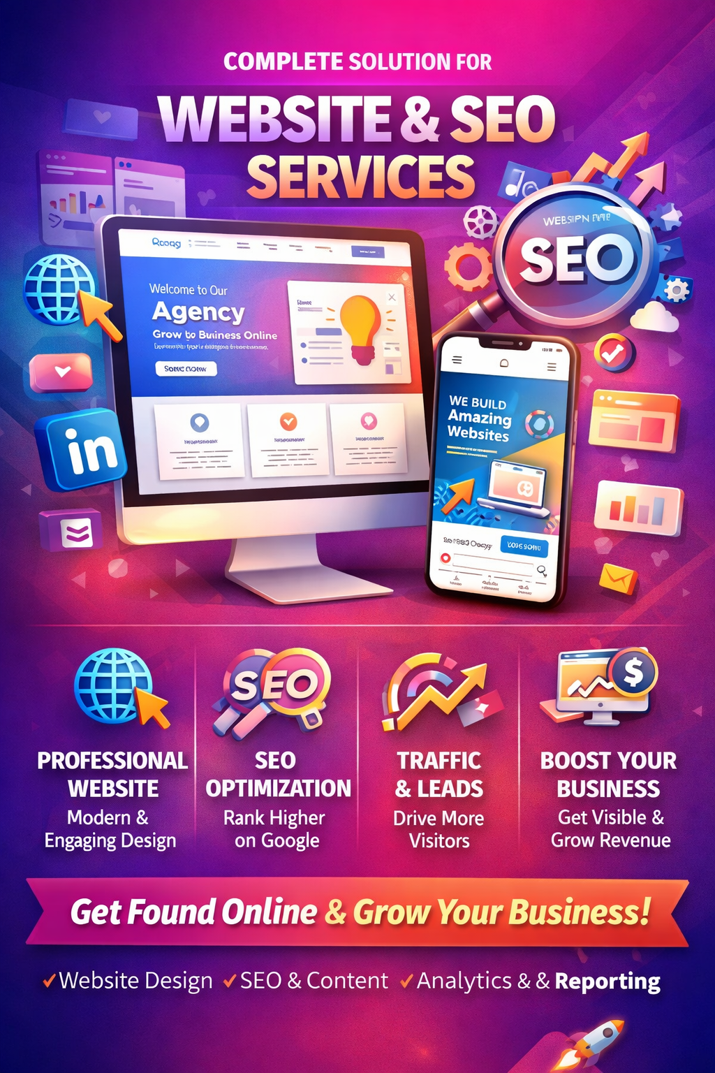 Whether on Facebook, Instagram, LinkedIn, or YouTube, our strategies ensure measurable results, helping your business grow, connect, and thrive online.
